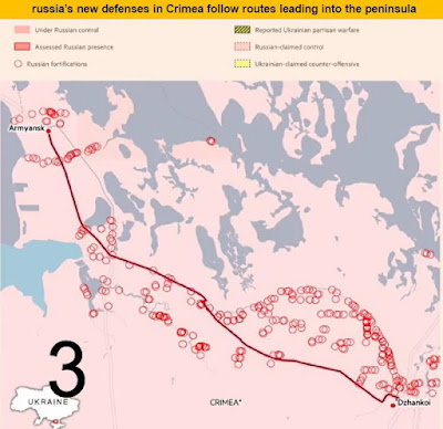 Cách đây cỡ một tuần có thông tin mà tui đã điểm một lần rằng theo cơ quan tình báo Ukraine thì riêng ở mặt trận miền nam – tức là phần lãnh thổ hai tỉnh Kherson và Zaporizhzhia bị tạm chiếm, có đến 150.000 quân Nga đóng giữ. Nếu mà như vậy thật thì đây là một con số khủng khiếp, vì chẳng cần nói bạc nhược hay không, riêng “phá cái đảo” đó đã là cả một vấn đề. Tất nhiên, đông quân nó có vấn đề của đông quân. Xin các bác xem hình số 3 đính kèm theo bài này: đường giao thông từ Dzhankoi lên Armiansk được quân Nga đóng đồn bốt dày đặc hai bên.