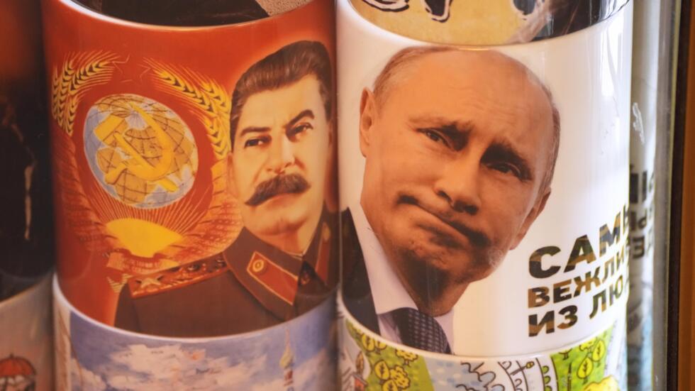 Ảnh minh họa : Những tách nước in hình Stalin và Putin tại một gian hàng bán đồ kỷ niệm ở Saint-Pétersbourg, Nga, ngày 06/04/2022. APSát hại Navalny, Putin khẳng định quyền sinh sát với « thần dân »