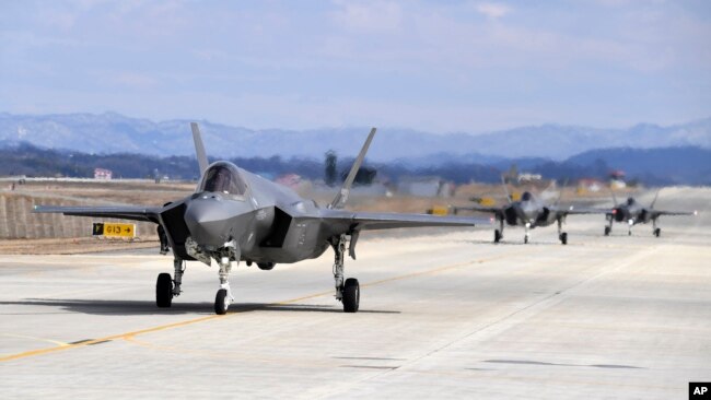 Các chiến đấu cơ F-35A của Không quân Hàn Quốc chuẩn bị cất cánh từ căn cứ ở Cheongju, Hàn Quốc, ngày 23/2/2024. Ảnh do Bộ Quốc phòng Hàn Quốc cung cấp.Hàn Quốc và Hoa Kỳ hôm 23/2 đã điều các máy bay chiến đấu tàng hình tiên tiến đến tham gia một cuộc tập trận đánh chặn tên lửa chung trên bán đảo Triều Tiên, theo lực lượng không quân Hàn Quốc cho biết. Đây được xem là một phản ứng rõ ràng của Mỹ và Hàn Quốc đối với một loạt các vụ thử vũ khí trong năm nay của đối thủ Triều Tiên.