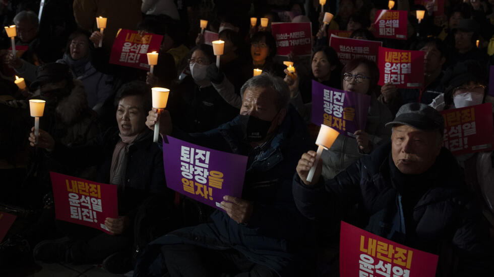 Đoàn biểu tình, với khẩu hiệu « Truy tố tổng thống Yoon Suk Yeol về tội phản quốc ! Phản kháng Thắp nến ! » tiến về phía dinh tổng thống ở Yongsan, Seoul, hôm qua. Một số vụ đụng độ đã nổ ra giữa người biểu tình với cảnh sát giao thông. Người biểu tình cũng diễu hành xung quanh tòa nhà Quốc Hội, hô vang các khẩu hiệu như « Bắt giữ Yoon Suk Yeol ».