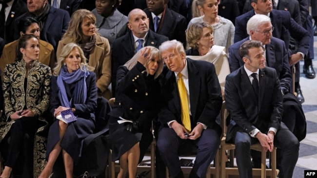 Tổng thống Pháp Emmanuel Macron đi cùng Tổng thống Mỹ đắc cử Donald Trump và Tổng thống Ukraine Volodymyr Zelenskyy khi họ rời đi sau cuộc họp ba bên tại Điện Élysée ở Paris trong khuôn khổ buổi lễ đánh dấu việc mở cửa trở lại Nhà thờ Đức Bà Paris.Tỷ phú hãng Tesla Elon Musk, một cố vấn thân cận trong đội ngũ chuyển giao chính quyền của ông Trump, cũng tham dự, cũng như Thủ tướng Ý Giorgia Meloni và các cựu tổng thống Pháp François Hollande và Nicolas Sarkozy.