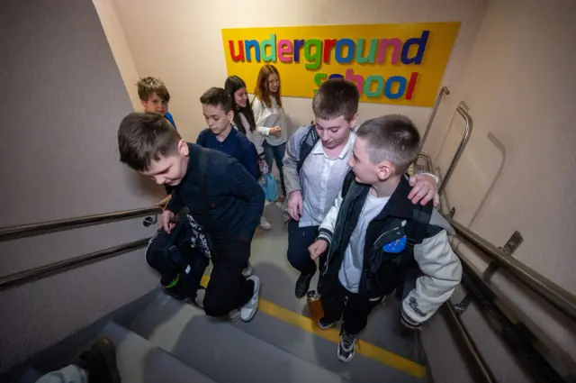 Trong thời kỳ quá độ chuyển đổi ngôn ngữ, nhiều học sinh chọn tiếng Surzhyk để trò chuyện với nhau vì ai cũng hiểu (Ảnh một trường học dưới lòng đất ở Kharkiv)