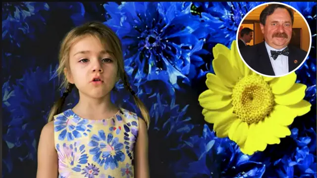 Ông Andrzej Ludek (ảnh nhỏ) chia sẻ video bài hát "Отмените войну". Trên nền hoa mang màu cờ Ukraine, bé Zarinka hát tiếng Nga kêu gọi người lớn ngừng đánh nhau.