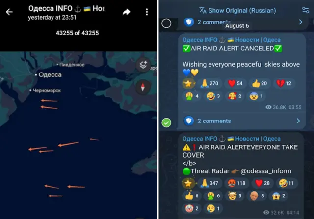 Ảnh chụp màn hình hướng tên lửa Nga tấn công Odesa. Các mạng xã hội ở miền Đông Nam vẫn chủ yếu bằng tiếng Nga.2022: Tiếng Nga là ngôn ngữ của kẻ thù