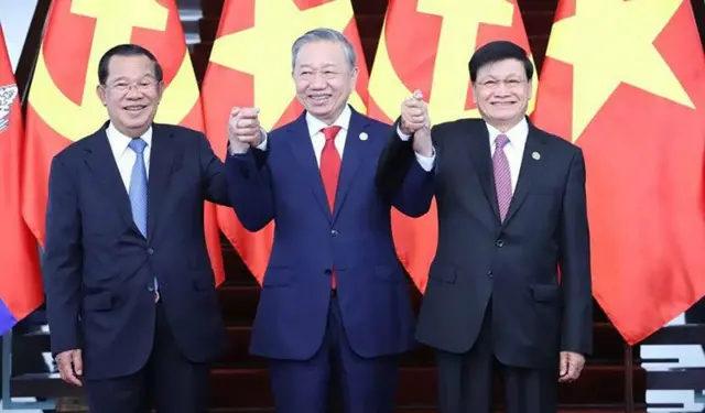 Từ trái sang phải: Chủ tịch CPP Hun Sen, Tổng Bí thư Tô Lâm và Tổng Bí thư Lào Thongloun Sisoulith cùng hội ngộ tại Phnom Penh để tăng cường hợp tác ba bên
