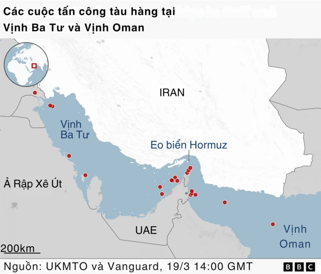 Theo dữ liệu được BBC Verify phân tích, chỉ có chưa đến 100 tàu thuyền đi qua eo biển Hormuz kể từ đầu tháng Ba, bất chấp các cuộc tấn công định kỳ vào tàu thuyền trong khu vực của lực lượng Iran.